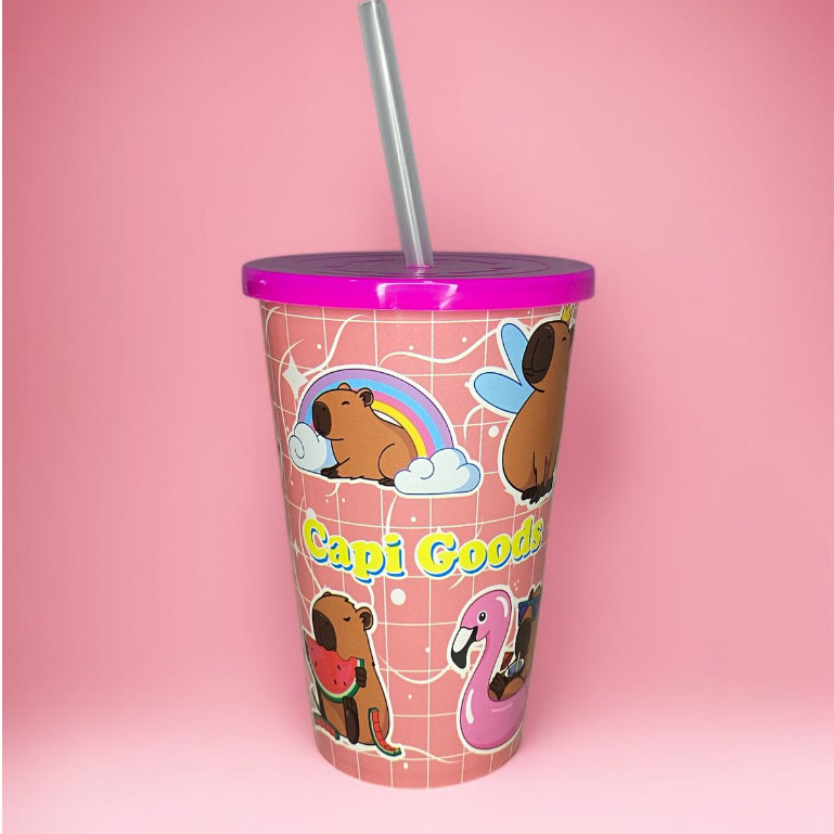KIT PIPOQUEIRA 1.5L + COPO 550 ML CAPIVARA ROSA - CINEMA LEMBRANCINHA PRESENTES⭐