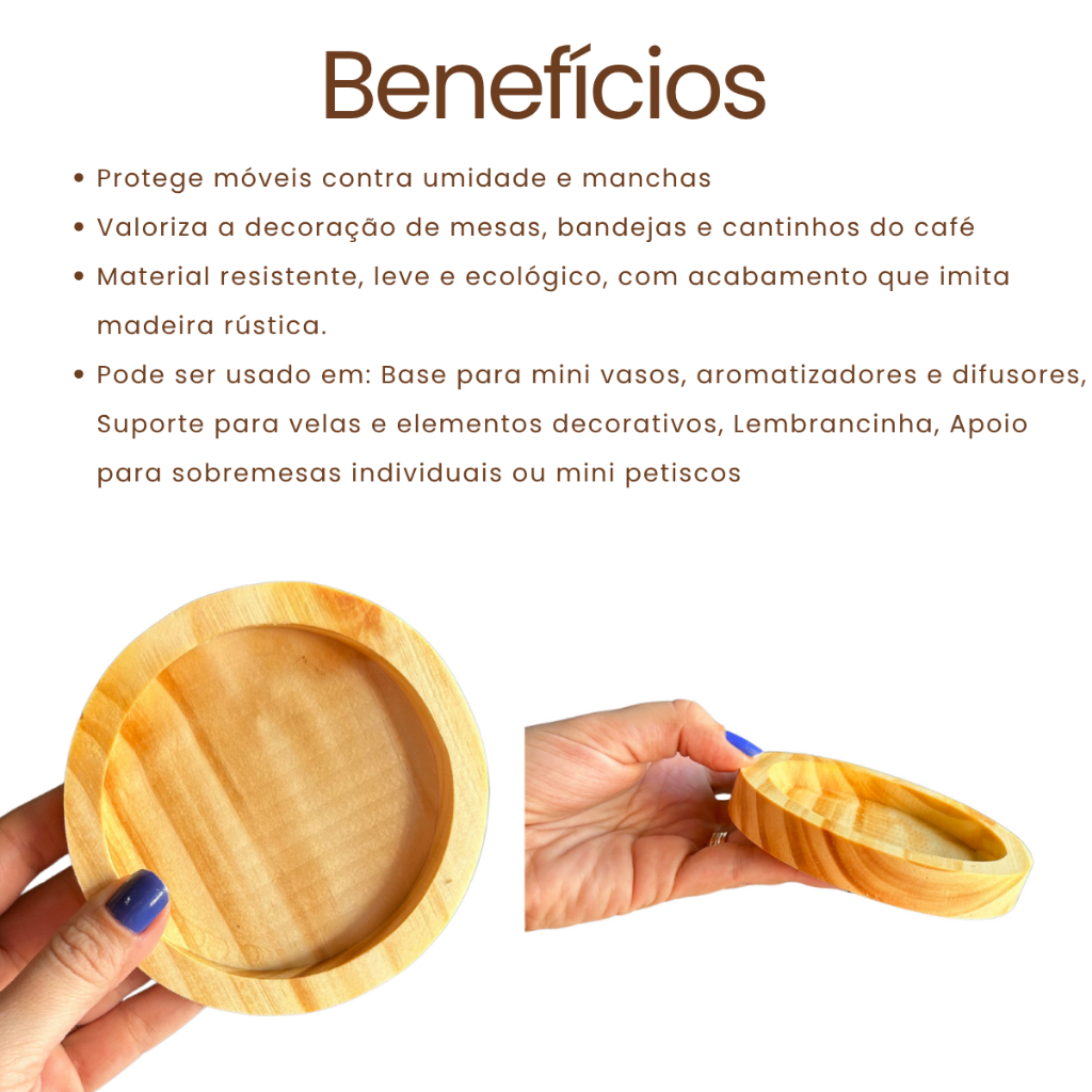 Kit Pires Porta Copo de Madeira Pinus Redondo Apoio para Xícara Café e Chá Mesa Posta