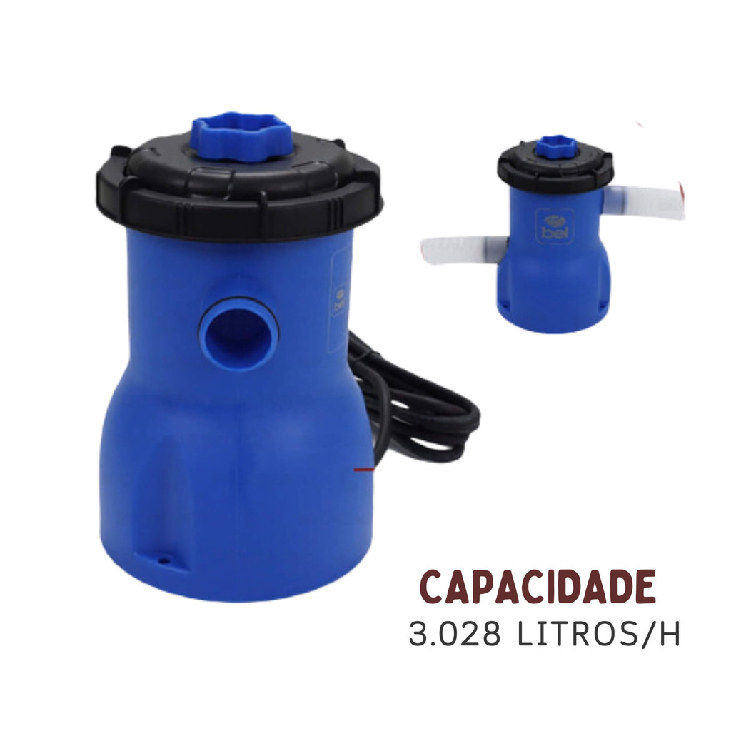 A Piscina de Armação 5.000 Litros Bel é a melhor opção para se refrescar com a família e amigos nos dias de sol e calor. Fácil de montar, a piscina tem um tamanho ideal para brincar, mergulhar e se divertir nos dias quentes. Com paredes laterais com espessura tripla de PVC e poliéster resistente e armação de metal resistente à ferrugem, a Piscina de Armação 5.000 Litros Bel é ideal para você passar momentos inesquecíveis no sol. Informações: · Paredes laterais com espessura tripla de PVC e poliéster resistente · Armação de metal resistente à ferrugem · Fácil montagem · Kit reparo resistente incluso · Medidas: 305cm x 76cm Características: - Marca: Bel - Modelo: 510000 *Imagens meramente ilustrativas Especificações Técnicas: - Formato: Redonda - Diâmetro da Piscina: 3,05 metros - Estrutura: PVC, Poliéster - Adesivo Reparo: Sim - Capacidade: 5.000 Litros / Usuários: 5 Adultos - Cor: Azul - Modelo: Armação - Dimensões aproximadas montado (C x L x A): 305 cm x 305 cm x 76 cm Especificações Técnicas Bomba: - Corrente: 25 A - Frequência: 60HZ - Grau de proteção (IP): IPX7 - Classe de isolamento: Classe I - Medidas do filtro: 10,5 cm x 10,5 cm x 13,5 cm - Estrutura: PE (Polietileno), PP (Polipropileno) - Bomba: Elétrica - Capacidade: 3.028 Litros/ Hora - Observação: Filtro Indicado: Ref. 175800 Bel - Cor: Azul - Modelo: Bomba de Filtragem - Dimensões aproximadas montado (C x L x A): 18 cm x 18 cm x 28,2 cm Conteúdo da Embalagem: - 1x Piscina Estruturada 5.000 Litros - 1x Bomba de fitragem - 1x Lona Piscina - Litros - Azul - Redonda - Capacidade - kit - Filtro - Infantil - Divertida
