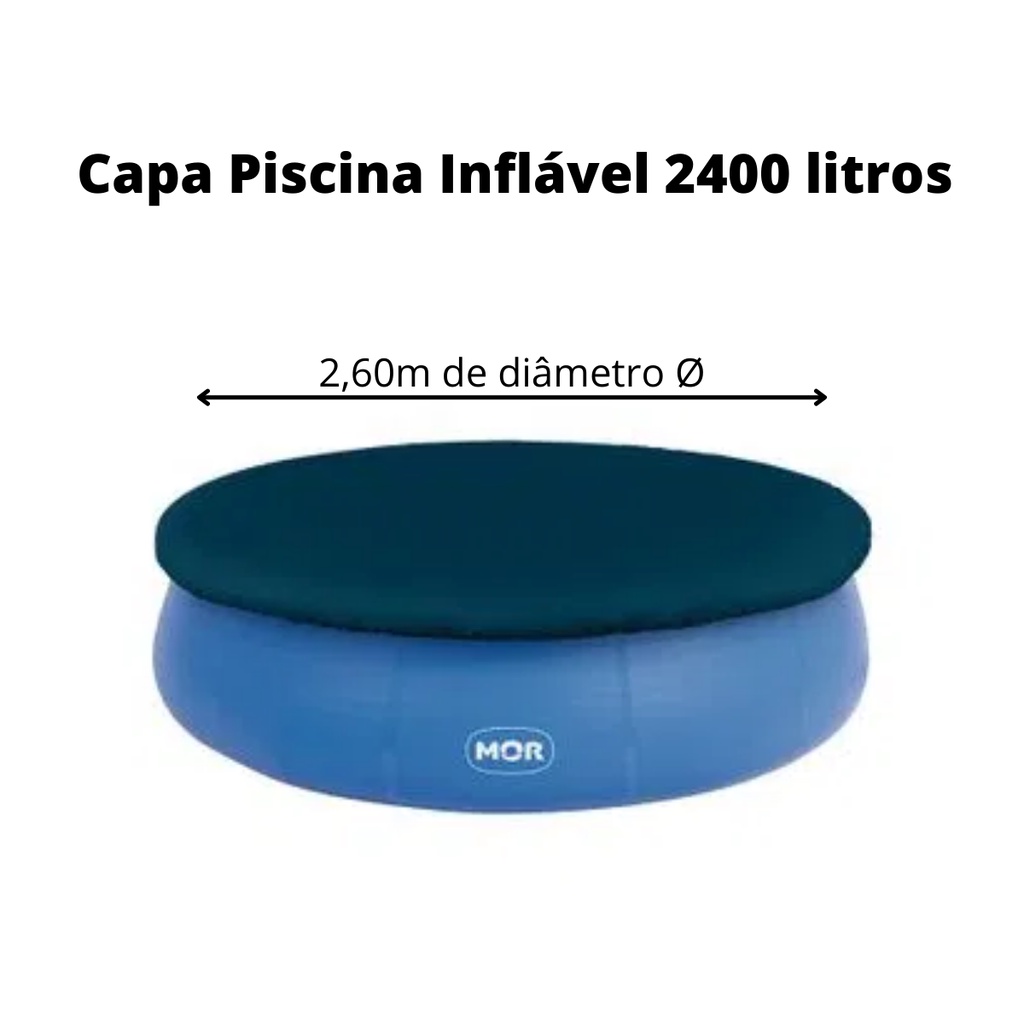 PISCINA INFLÁVEL 2400 LITROS + CAPA PROTETORA - MOR PRODUTO ORIGINAL E A PRONTA ENTREGA A dica do verão é a Piscina Inflável 2.400 litros! Fácil de montar, ela não possui estrutura e a lona é reforçada com uma tela tramada entre as lâminas, que proporciona maior resistência. É isto mesmo! A sua única estrutura é a água, evitando quinas e peças rígidas que podem ferir os pequenos. Para facilitar ainda mais a montagem, a Piscina Inflável acompanha válvula de deságue, válvula de filtro e kit reparo Atenção! Nunca deixe crianças sozinhas perto da água sem supervisão de um adulto. CARACTERÍSTICAS DO PRODUTO: Tipo de Material: PVC Cor: Azul Capacidade: 2.400 litros Peso: 5,16 Kg DIMENSÕES DO PRODUTO: Altura: 63 cm Largura: 2,40 m Comprimento: 2,40 m DESCRIÇÃO DA CAPA: Mantenha sua piscina sempre limpa com a Capa Piscina Inflável! Ela é perfeita para proteger contra insetos parasitas, água da chuva, folhas e sujeiras em geral, conservando a água da piscina própria para banho por muito mais tempo, ajudando assim o meio ambiente.Produzida em PVC, a Capa possui cordas em poliéster para serem fixadas na estrutura da Piscina Inflável de 2.400 litros. Lembrando que, além da Capa, é indispensável fazer o tratamento químico recomendado para a capacidade de água da sua piscina de acordo com seu Manual! CARACTERÍSTICAS DO PRODUTO: Tipo de Material: PVC Indicada para Piscina de 2.400 litros DIMENSÕES E PESO DO PRODUTO: Altura: 1 cm Largura: 260 m Comprimento: 2,60 m Peso: 1,33Kg MOR: A MOR nasceu no município de Santa Cruz do Sul, começando como uma empresa familiar. Inicialmente fabricavam produtos para apicultura, em uma pequena metalúrgica no início dos anos 60. Hoje, com mais de 50 anos de história a empresa cresceu e se firmou no mercado de produtos para casa, camping e lazer.