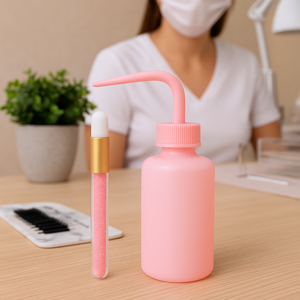 Kit Pisseta e Pincel Rosa – Higienização Profissional para Extensão de Cílios