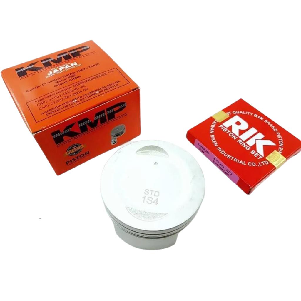 KIT PISTAO COM ANEIS PREMIUM STD FAZER 250/LANDER 250 Acompanha: - Pistao STD KMP - Jogo de Aneis RIK - Pino - Travas Aplicacao: - Fazer 250 2006 Em Diante - Ys 250 - Lander 250 2007 Em Diante - Tenere 250 Todas Fabricante: - KMP / RIK Caracteristicas: O Kit Pistao KMP com Aneis RIK e sinonimo de qualidade, durabilidade e custo beneficio para sua motocicleta, apresentando melhor rendimento e durabilidade do motor. Contando com seu baixo peso e otimos acabamentos juntamente com os aneis RIK ele veda perfeitamente a camara de combustao, elevando nivel de rendimento do motor e diminuindo o consumo de combustivel. Recomendamos que a montagem seja feita por um profissional do ramo.