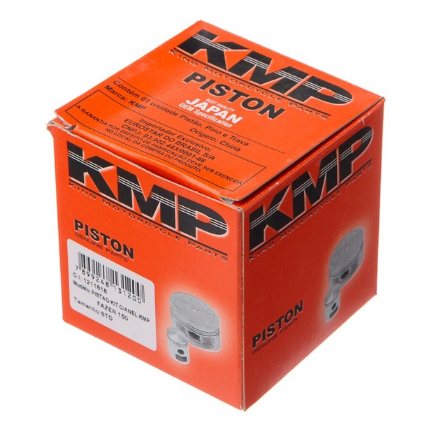 PISTAO KIT COM ANEL KMP FAZER 250 2006/ - LANDER 250 2007/ - TENERE 250 2011/ STD Caracteristicas O Pistao Kit com Anel KMP e composto por pistao com pino e travas. incluindo Aneis de Segmento KMP. Tudo isso com qualidade e tecnologia moderna da KMP. marca lider no mercado. A medida e STD. MOTOS COMPATIVEIS FAZER 250 2006 - EM DIANTE LANDER 250 2007 - EM DIANTE TENERE 250 2011 - EM DIANTE Informacoes Tecnicas Cor: Tamanho: Peso Liquido: 0,26