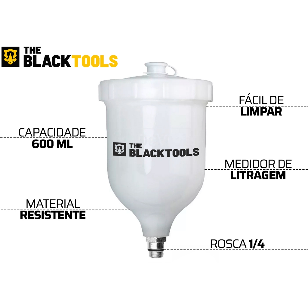 Kit Pistola De Pintura 1000ml + Copo Para Extra 600ml The Black Tools