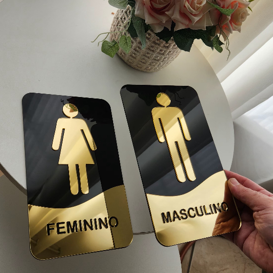 Kit Placa De Sinalização Banheiro Acrílico Espelhado Kit Masculino e Feminino
