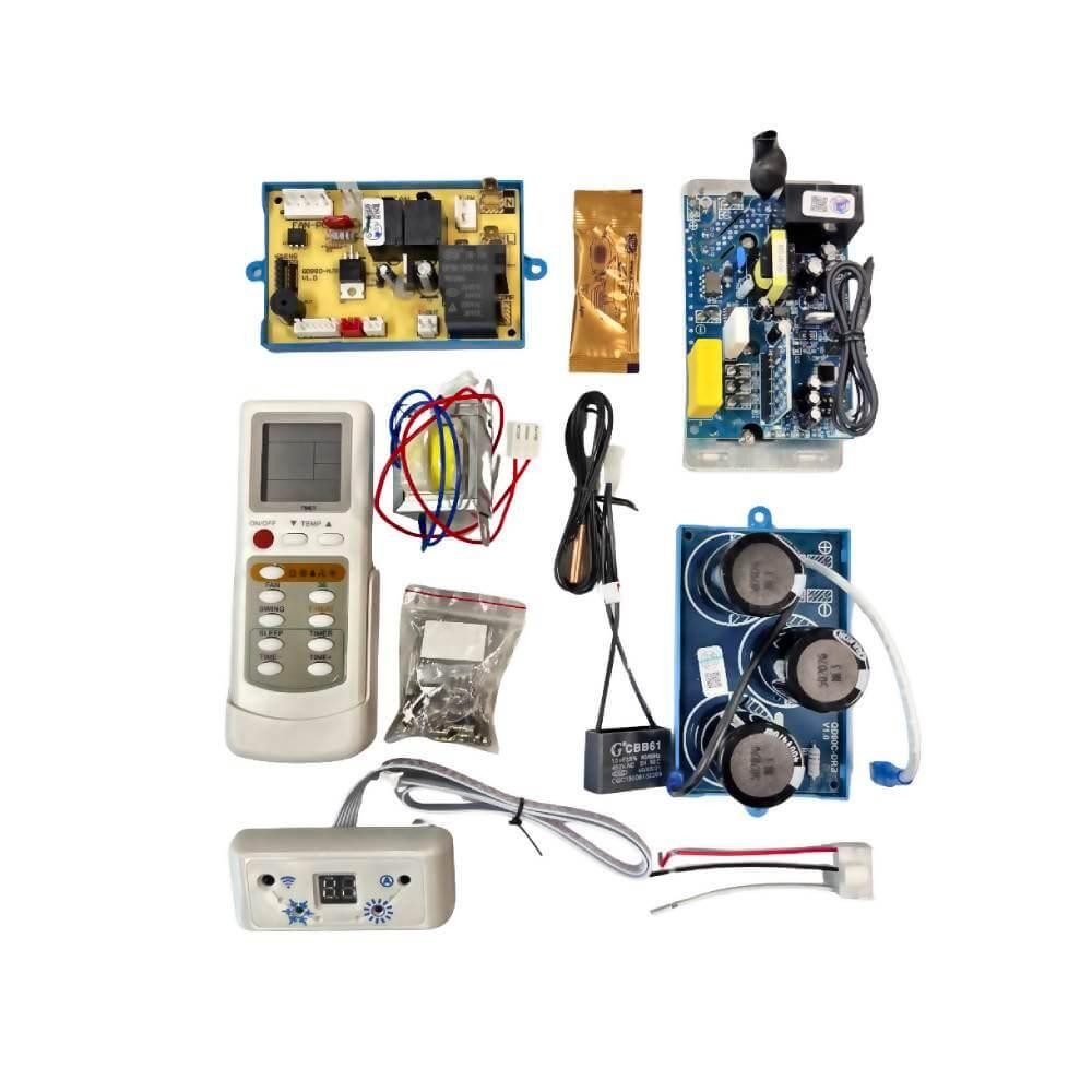 Kit Placa Universal para Ar Condicionado Inverter 9000 a 12000 com Controle Remoto Hulter HT1QD80CAAtualize o desempenho do seu ar-condicionado inverter com o Kit Placa Universal Hulter HT1QD80CA, ideal para modelos de 9000 a 12000 BTUs. Este kit completo é a solução perfeita para restaurar o funcionamento do equipamento com eficiência e praticidade, oferecendo tecnologia compatível com diversas marcas e modelos.Além da fácil instalação, o kit acompanha manual do usuário detalhado e peças embaladas para garantir segurança no manuseio. Com o controle remoto incluso, você tem total praticidade na operação do sistema, mantendo sua climatização sempre eficiente. Cada item foi cuidadosamente desenvolvido para garantir compatibilidade e desempenho otimizado, proporcionando conforto térmico com economia de energia. Acompanha o produto: Placa interna universal; Sensor de unidade interna; Transformador; Painel de exibição; Placa do inversor externo; Sensor de temperatura do escape do compressor; Placa de capacitor eletrolítico; Controle remoto; Manual do usuário; Peças embaladas; Fio de conexão para ventilador interno; Capacitor de partida com soquete especial.