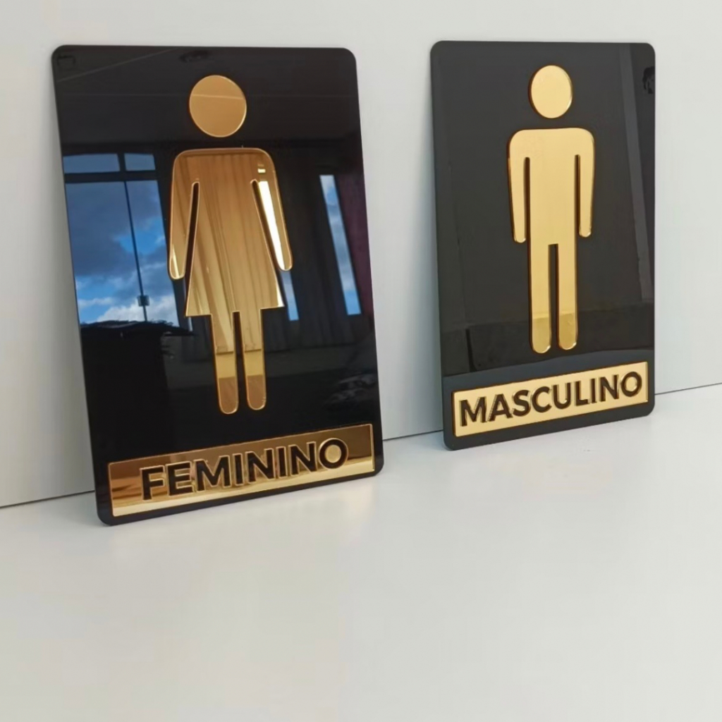 Kit Placas Acrílico Espelhado Porta Banheiro Wc Feminino e Masculino - Placa Sinalizadora Espelhada