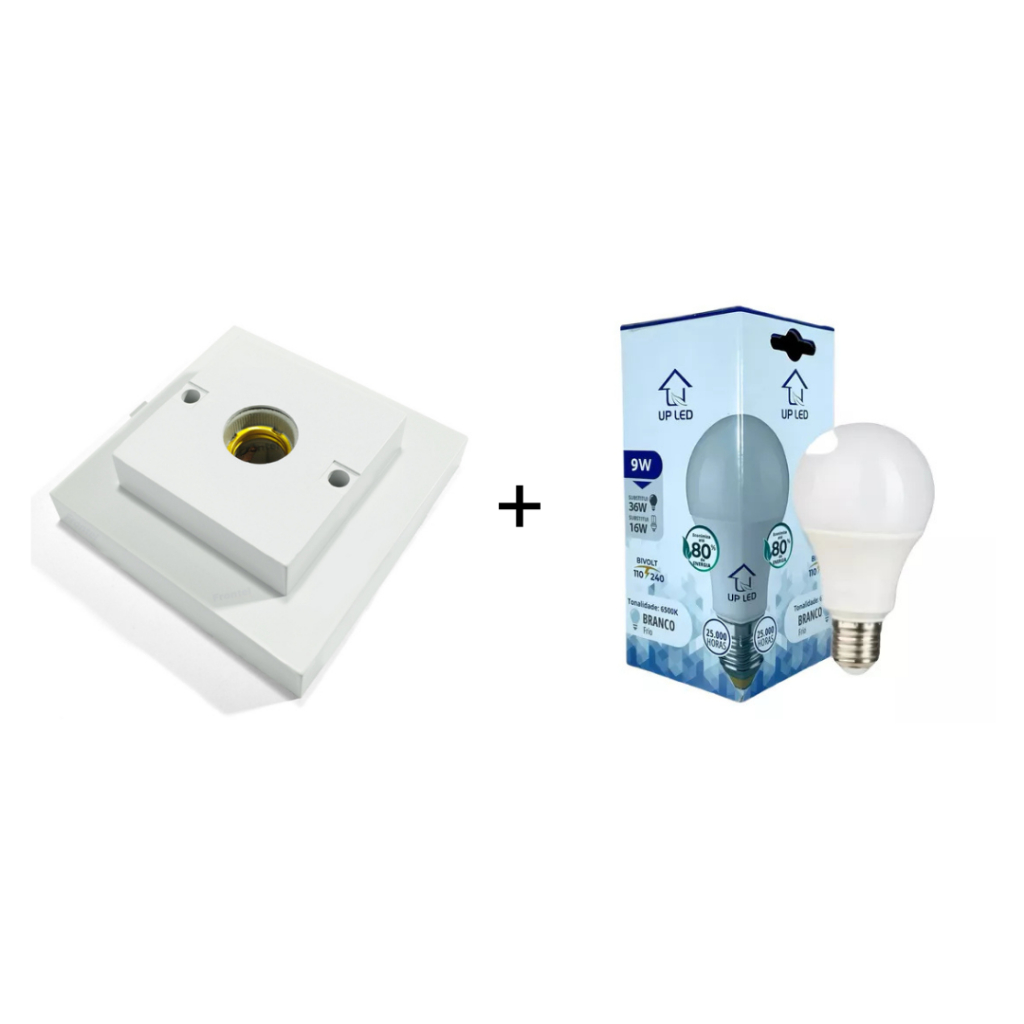 Kit Plafon Quadrado Preto e Branco 100W Interneed E27 + Lâmpada 9W 6500K Casa Luminária Apartamento Área Interna Sala