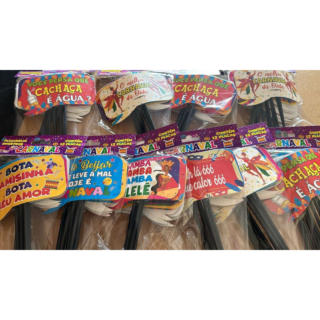 Entre no clima da folia com as nossas plaquinhas divertidas de Carnaval! Perfeitas para fotos e momentos inesquecíveis, nossas plaquinhas trazem frases engraçadas e animadas que vão garantir muita diversão durante a festa. Feitas com material leve e resistente, elas são ideais para grupos de amigos, blocos de rua, ou até mesmo para o seu próprio ensaio carnavalesco. Com design colorido e exclusivo, cada plaquinha traz um toque de irreverência e alegria, refletindo todo o espírito contagiante do Carnaval. Não fique de fora dessa! Garanta a sua plaquinha. Contém 12 unidades Papel grafico não é feito em impressora comum