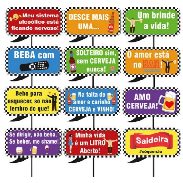 Com essas plaquinhas, a sua diversão é garantida!! informações do produto: Na embalagem contém 10 plaquinhas divertidas, conforme na imagem acima Tamanho aprox: 10x19 cm Material: Cartonado Para quaisquer perguntas, estaremos disponíveis.