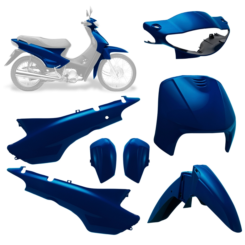 O Kit Plástico Biz 100 1998 Até 2005 é fabricado em termoplástico de alta resistência com pigmentos a prova de raios UV. Confeccionado em plástico rígido fruto de materiais de extrema qualidade, é também muito leve. Componentes do Kit: - 1 Bico Frontal; - 1 Par de Capa de Bengala; - 1 Carenagem do Farol; - 1 Par de Tampas Laterais; - 1 Paralama Dianteiro; Especificações: - Design personalizado e mais resistente que os plásticos originais; - Mesmo molde do modelo original, não necessita adaptações; - Peça pintada e envernizada; - Sem adesivo; - Marca: Pro Tork. Aplicação: - Vermelho Maceió: 1998, 1999, 2000 e 2001; - Amarelo Solar: 1998 e 1999; - Azul Biscaia Metálico: 1998 e 1999; - Azul Iguassu: 1998 e 1999; - Azul Andes Metálico: 2000; - Verde Riviera: 2000; - Preto: 2000, 2001, 2002 e 2003; - Azul Itaparica Metálico: 2001; - Verde Marajó Metálico: 2001; - Verde Boituva: 2002; - Vermelho Sapucaí: 2002 e 2003; - Azul Twister Perolizado: 2002 e 2003; - Verde Pantanal Metálico: 2003; - Verde Pantanal Metálico: 2004; - Azul Itajaí Perolizado: 2004; - Preto: 2004 e 2005; - Vermelho Ipiranga: 2004 e 2005; - Azul Cruzeiro Perolizado: 2004 e 2005; - Azul Iguape Perolizado: 2005; - Verde Castelhano Perolizado: 2005; - Prata Force: 2005; - Prata Jappy: 2002 e 2004. Instalação: - A instalação deve ser feita por um profissional especializado. A Sportbay não se responsabiliza por instalação mal realizada.