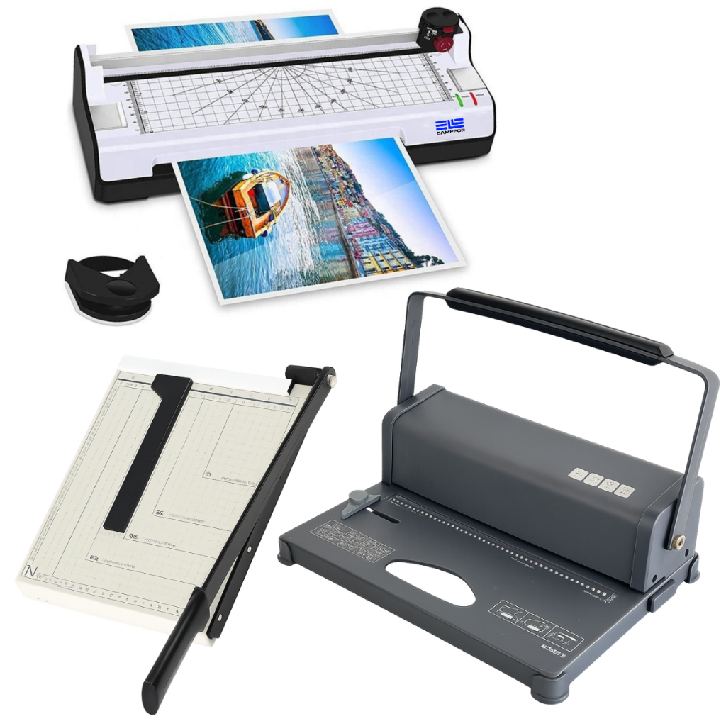 Kit Plastificadora A4 + Guilhotina + Encadernadora 12 Folhas