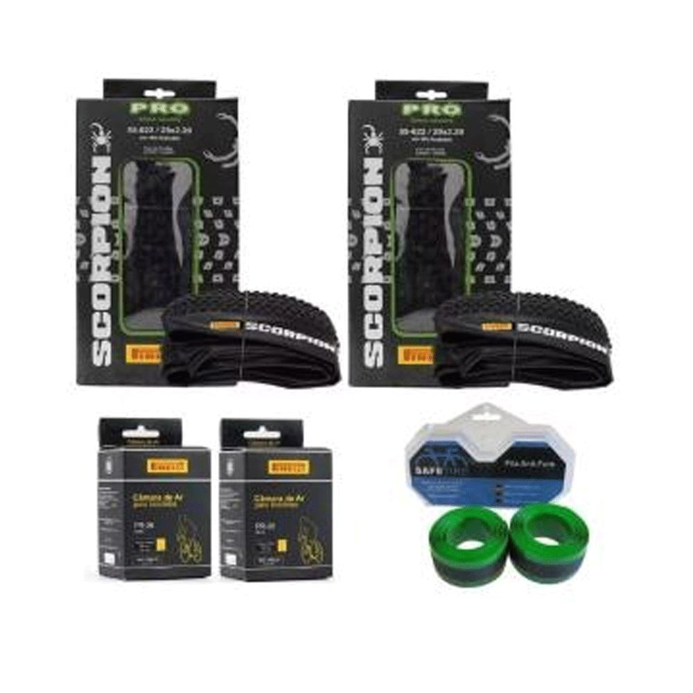 Kit Pneus Mtb Pirelli Scorpion Aro 29 + Câmaras de Ar + Fitas Anti Furo