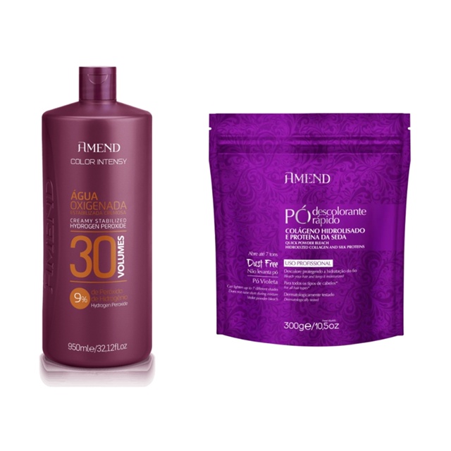 Kit Pó Descolorante Amend Roxo Colágeno Profissional 300g + Água Oxigenada 30 Volumes 950 ml