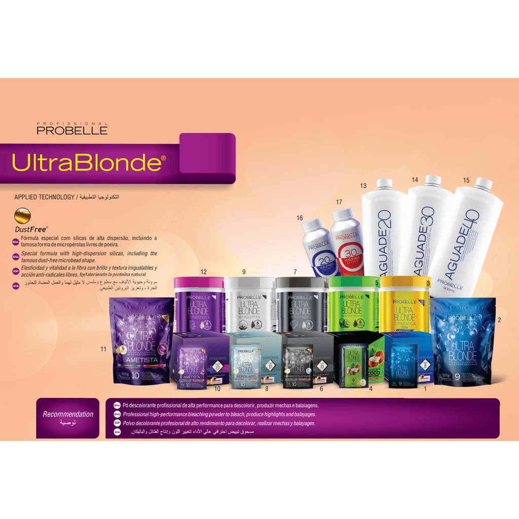 kit Pó Descolorante Ultra Blond 300g + Agua oxigenada cremosa 40 vol 900ml probelle