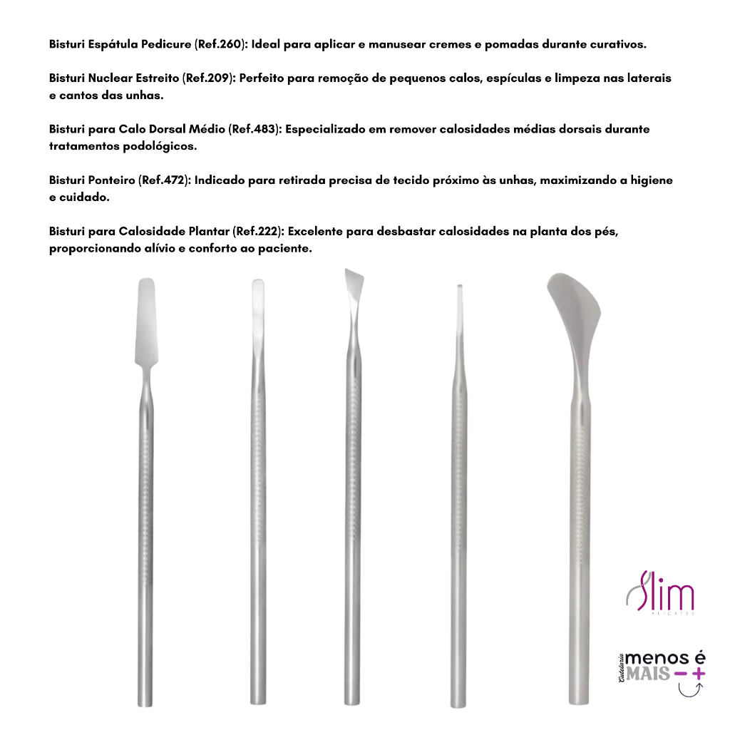 Kit Podologia Profissional Slim 5 Instrumentos Podólogo Bisturi
