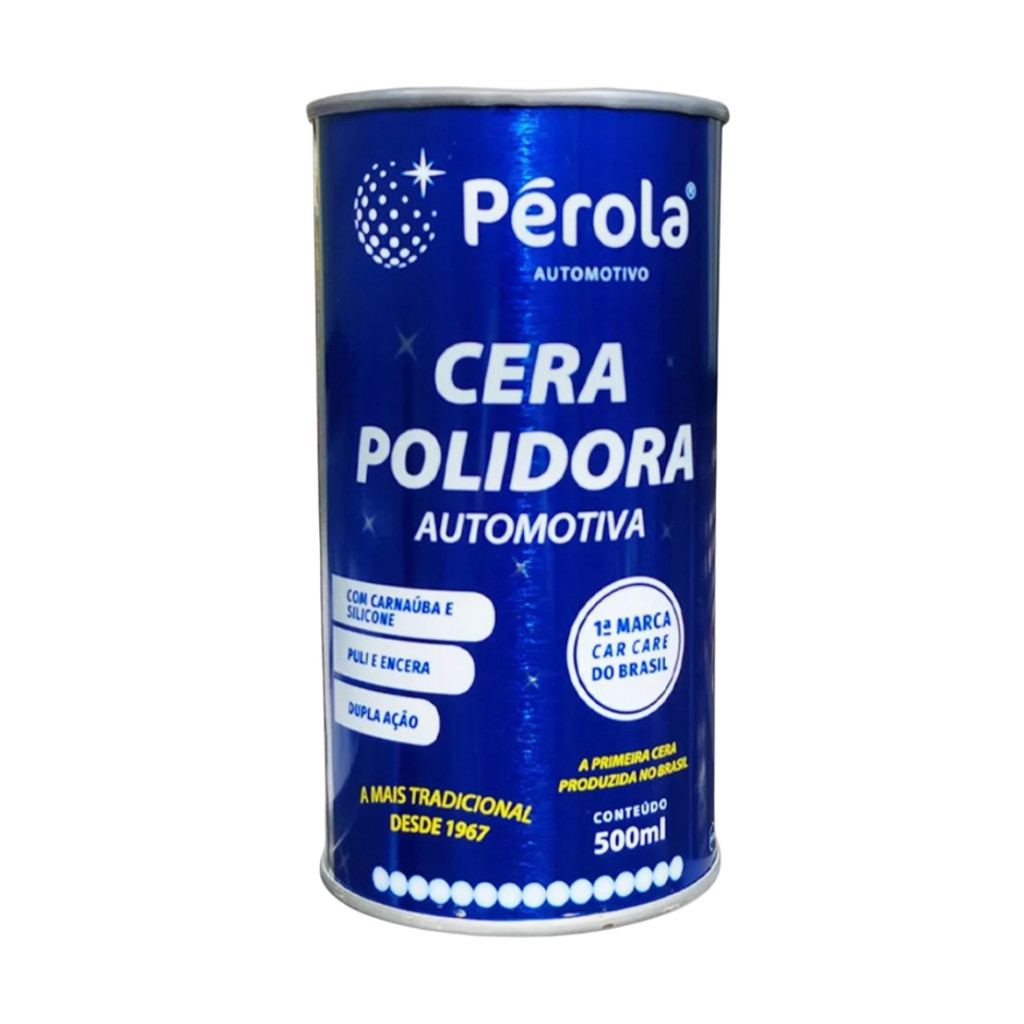 KIT PARA POLIMENTO PEROLA CERA LIQUIDA + MASSA CERA POLIDORA AUTOMOTIVA A Cera Polidora Pérola é um produto que pule e encera em uma só operação. Formulada à base de carnaúba e silicone, deixa novas e impermeabilizadas superfícies pintadas a duco, acrílicos, poliuretano, etc. Recomendada para pinturas que se encontram em estado regular para bom. Além de automóveis, ônibus, aviões, trailers, barcos, etc… Pode ser usada no lar para embelezar e conservar geladeiras, fogões, máquinas de lavar, cromados, etc. Modo de Usar: Agite o frasco e aplique pouca quantidade com algodão para polimento Pérola. Espalhe o melhor possível, friccione em movimentos horizontais e finalize em movimentos circulares a superfície a ser encerada. Encerar sempre uma peça de cada vez, deixe secar por alguns segundos e limpe com algodão para polimento e finalize com Toalha de Microfibra Pérola. Indicada para todos os tipos de pintura. MASSA PARA POLIR AUTOMOTIVA Indicada para reavivar pinturas manchadas e oxidadas, pequenos arranhões e imperfeições, cromados, alumínio e metais em geral. Formulação especial com abrasivos micronizados que proporcionam um ótimo rendimento e um excelente acabamento. Modo de Usar: Espalhe pouca massa em pequenas áreas na superfície a polir. Friccione com estopa ou algodão, até obter o brilho desejado. Lustre com algodão limpo. Para proteger e impermeabilizar o polimento aplique qualquer Cera. Não aplicar nas borrachas e partes plásticas. Após o polimento com a Massa para Polir Pérola recomenda-se aplicar qualquer CERA para proteger e impermeabilizar a superfície polida. Contém: 1-Lata Massa 500g 1-Lata Cera Líquida 500ml Marca: Pérola .