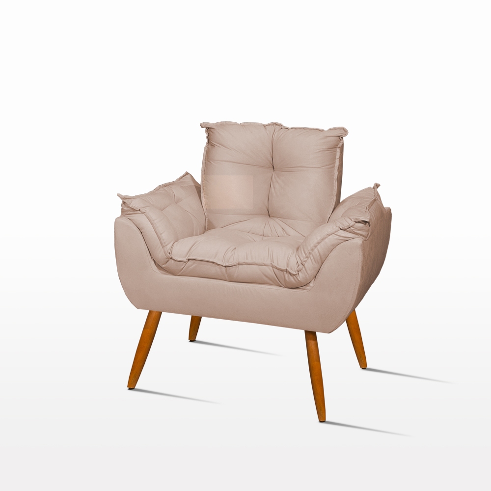 Kit Poltrona Decorativa Sala + 1 Puff Pés Palito - Balaqui