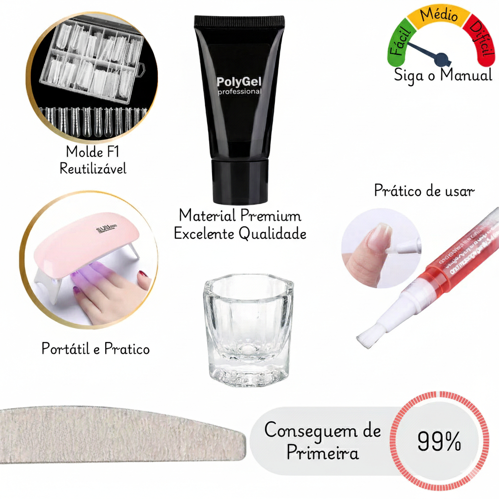 Kit Polygel Alongamento De Unha + Molde F1 + Lixa + Top Coat + Primer + Cabine Sun Mini Poligel Alongamento Unhas Poly