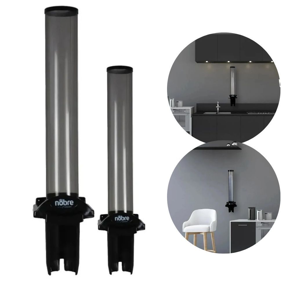 Kit Porta Copos de Agua 150ml a 200ml + Poupador de Copo de Café 50ml Nobre Automático Preto