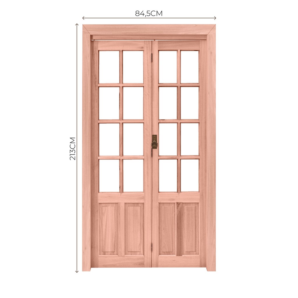 Porta sanfonada de madeira maciça (cotovelo), possui 4 dobradiças simples, uma cremona de embutir no acabamento ouro velho e trilho em alumínio. Vitrô quadriculado, não incluso vidros. Acompanha guarnição (vistas) 6 cm PARA UM LADO. O tom da madeira pode variar, por se tratar de um produto natural. A matéria prima (madeira) passa por um processo de secagem de 18 meses, incluindo secagem em estufa, os produtos saem da fábrica com lixamento pronto para pintura ou aplicação de selador e verniz. GARANTIA de 03 meses. Peso (kg): 50 Garantia: 03 Meses Altura (cm): 213 Largura (cm): 84 Espessura (cm): 12 Possui Grade: Não Possui Vidro: Não Modelo da Porta: Camarão Tipo de Madeira: Eucalipto Acompanha Trinco: Não Escala de Brilho: Fosco Lado de Abertura: Esquerda Textura da Porta: Com detalhe vidro Acompanha Batedor: Não Acompanha Batente: Sim Acompanha Puxador: 1 Tipo de Dobradiça: Simples Ambiente Principal: Interno Largura do Batente: 12 Acompanha Dobradiça: 6 Acompanha Fechadura: Não Acompanha Guarnição: Sim Material do Batente: Madeira Material do Puxador: Alumínio Necessita Instalação: Não Quantidade de Folhas: 2 Acabamento do Puxador: Ouro Velho Material da Dobradiça: Metalica Preenchimento da Porta: Maciça Tipo de Puxador da Porta: Embutido Acompanha Manual de Instalação: Sim Acabamento (Construção e Acabamento): Natural Material Principal Construção e Acabamento: Madeira Marca: Esel Tonalidade: Natural Cor do Produto: Natural Itens Inclusos: 1 Kit Porta de Madeira. Cor Predominante: Natural Linha ou Coleção: Gold Indicações de Uso: Kit Tamanho do Produto: 213cm x 84cm
