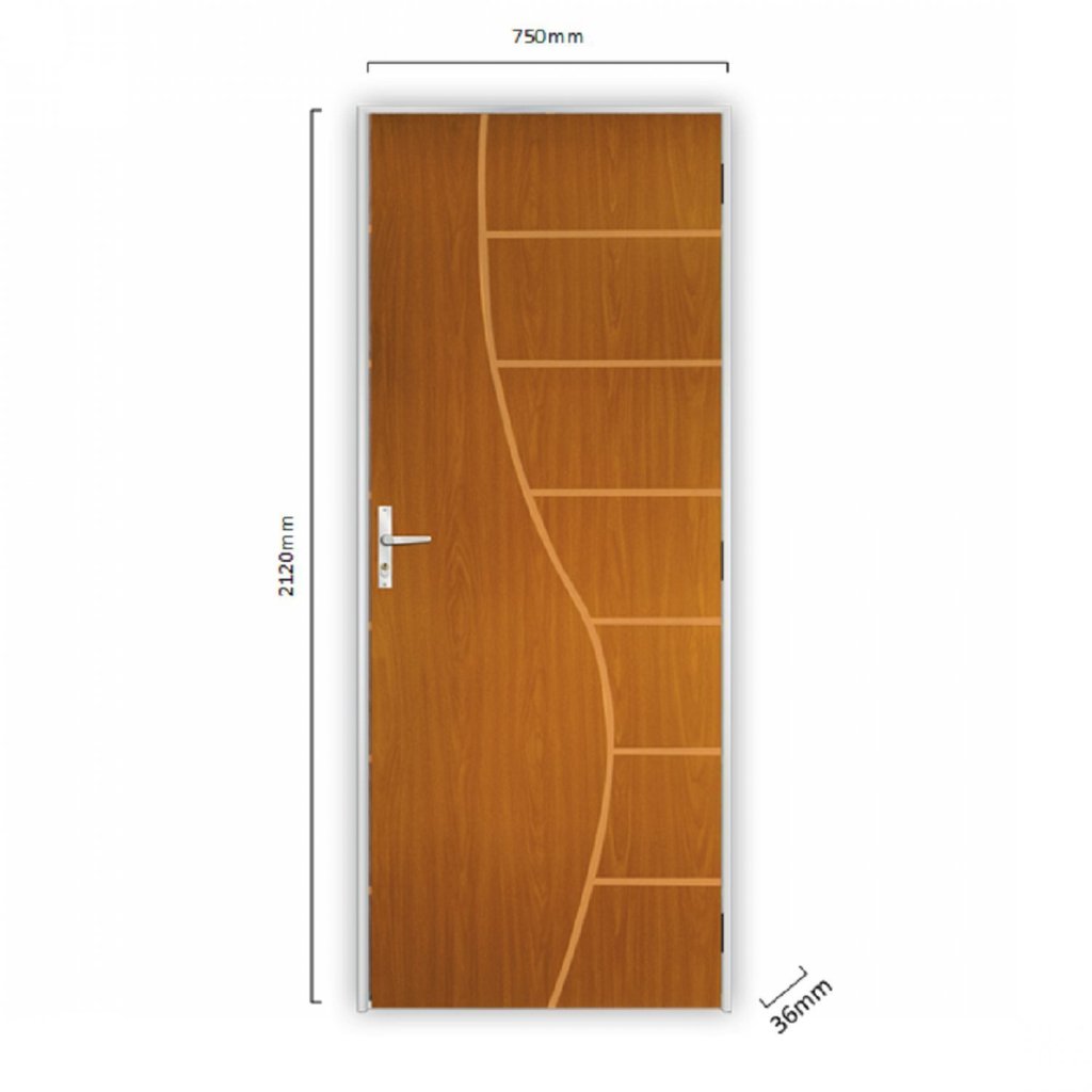 Kit Porta de Madeira Decorada 212x75cm com Batente de Alumínio 3,6cm Cantareira Mgm Abertura Direita Mogno