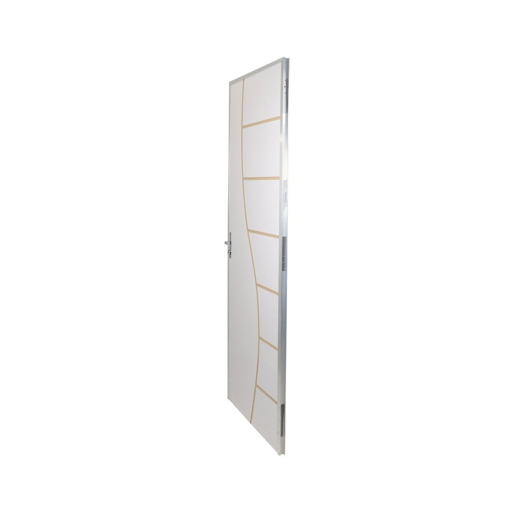 Kit Porta de Madeira Decorada 212x95cm com Batente de Aluminio 3,6cm Cantareira Mgm Abertura Direita Branco