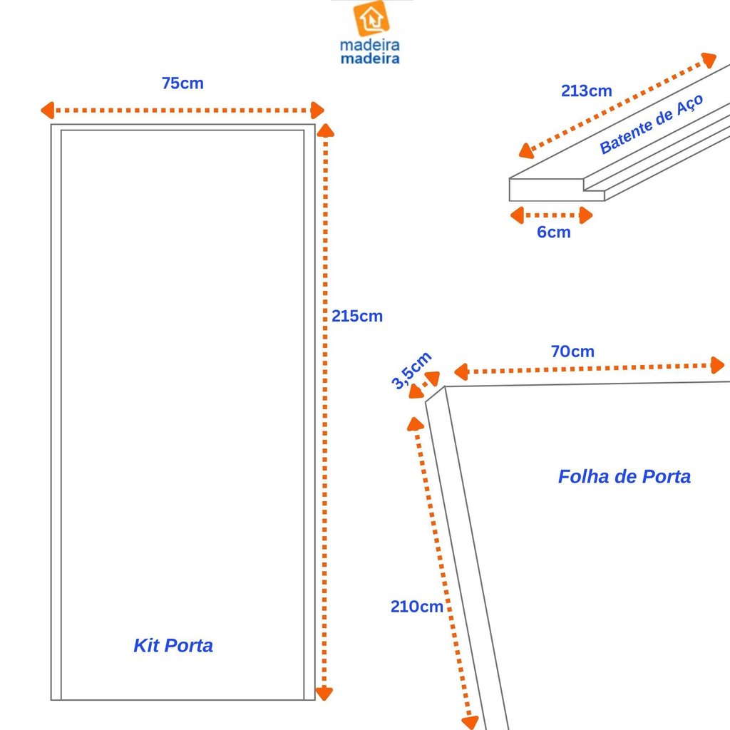 Kit Porta de Madeira Decorada 215x75cm com Batente de Aço 6cm Cantareira MGM Abertura Esquerda Mogno