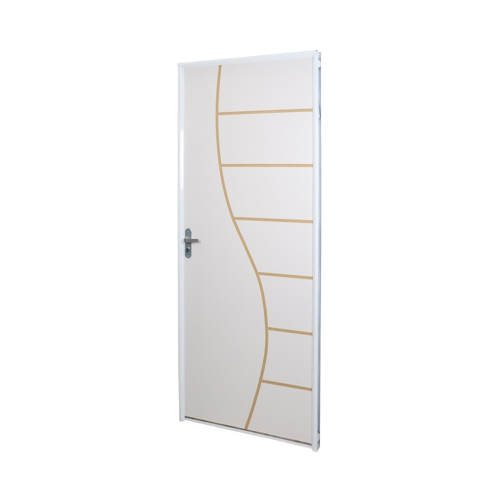 Kit Porta de Madeira Decorada 215x85cm com Batente de Aço 06cm Cantareira Mgm Abertura Direita Branco