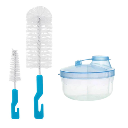Kit Porta Leite em Pó + Limpador de Mamadeira Para Bebê