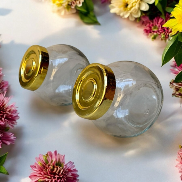 Kit Porta Temperos/Mantimentos Luxo em Vidro e tampa DOURADA GOLD - 200 ml