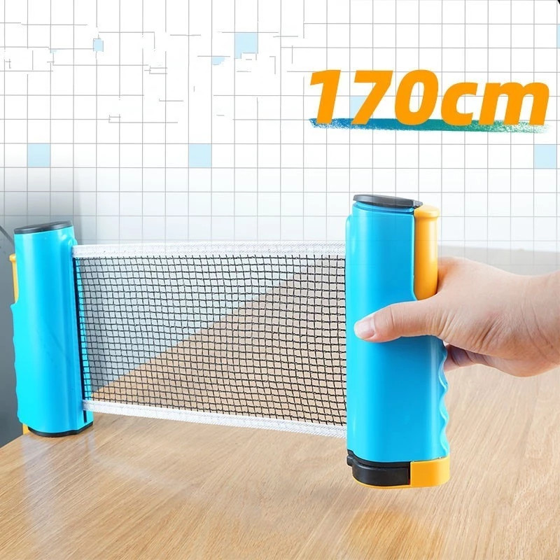 Kit portátil de tênis de mesa, inclui: 1 rede retrátil reforçada em ABS (até 170cm, altura 18cm, base fixa até 5cm, tamanho 19×14cm, cor azul) 2 raquetes aprimoradas para iniciantes (180g cada) 3 bolas Características: Montagem fácil sem ferramentas, desmontagem rápida, fácil armazenamento e portátil Ideal para casa, escritório, áreas externas e escolas Estoque novo, envio em até 24 horas Evite puxar a estrutura com força e usar em superfícies afiadas Para quem é: Indicada para iniciantes e entretenimento familiar; para treinamento profissional, use raquetes especializadas. Obrigado pelo apoio, aproveite o tênis de mesa com muita diversão!