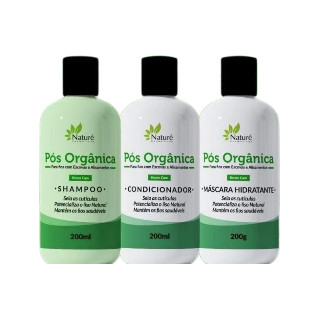 Kit Pós Orgânica Naturé Shampoo Condicionador Máscara 200g – Efeito Liso Prolongado e Tratamento
