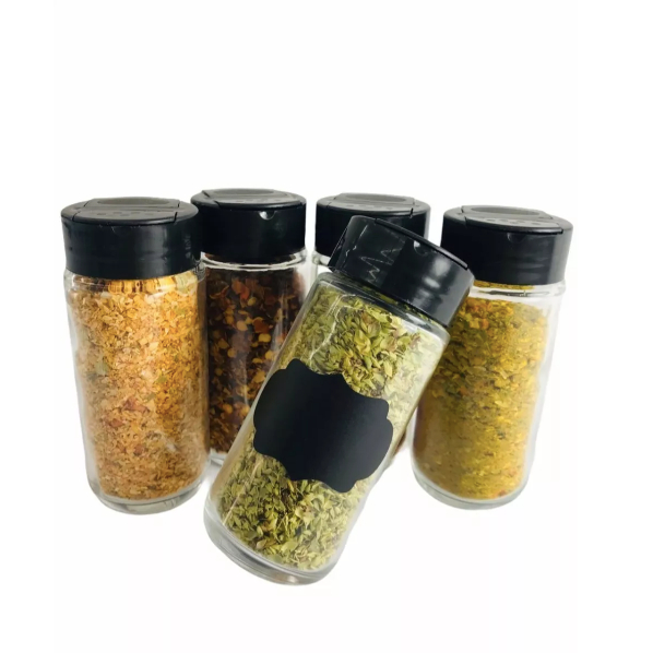 Kit com 10 frascos com tampa plástica Flip Top Dupla - Preta + 10 Etiqueta e 01 Canetinha O modelo de vidro com tampa plástica é ideal para a área alimentícia pois não enferrujam e são fáceis de lavar Basta abastecer os potes com seus temperos favoritos feche e pronto. O grande diferencial deste ótimo produto para sua cozinha permite que os temperos sejam expostos de maneira extremamente prática e bonita.Outra grande vantagem deste produto está no material de vidro totalmente vedado, o que permite que o tempero seja totalmente isolado de efeitos externos e possua excelente qualidade e durabilidade. Por fim, cada pote possui vedação com rosca e tampa dosadora, o que faz com o tempero seja dosado com precisão e praticidade. Ideal para: - Restaurantes (para deixar na mesa) - Cozinhas domésticas ou profissionais Características: - Kit todo transparente (combina com qualquer decoração) - Inclui tampa plástica com abertura dupla para e dois tamanhos de medidas. (APENAS TAMPA PRETA) Especificações: - Capacidade: 100ml - Altura: 100mm - Diâmetro: 40mm - Peso: 112g - A pronta entrega - Produto 100% novo