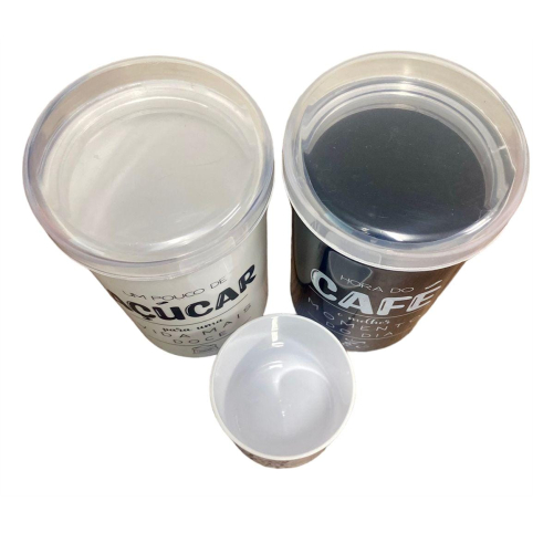 Pote de café e açúcar em ACRILÍCO HERMÉTICO. Esse conjunto porta condimentos, além de organizar, vai decorar o seu ambiente, trazendo um toque de requinte e sofisticação. São ideias para organizar e decorar sua cozinha, ou cantinho do café. Acompanha Kit Preto e Branco: - 1 Pote Café Preto - 1 Pote Açúcar Branco - 1 Copo lar doce lar MATERIAL: POTES: PS (ACRÍLICO) TAMPAS: PS (ACRÍLICO) Capacidade: 1 Litro DIMENSÕES: Altura : 18,0 cm Largura : 10,0 cm