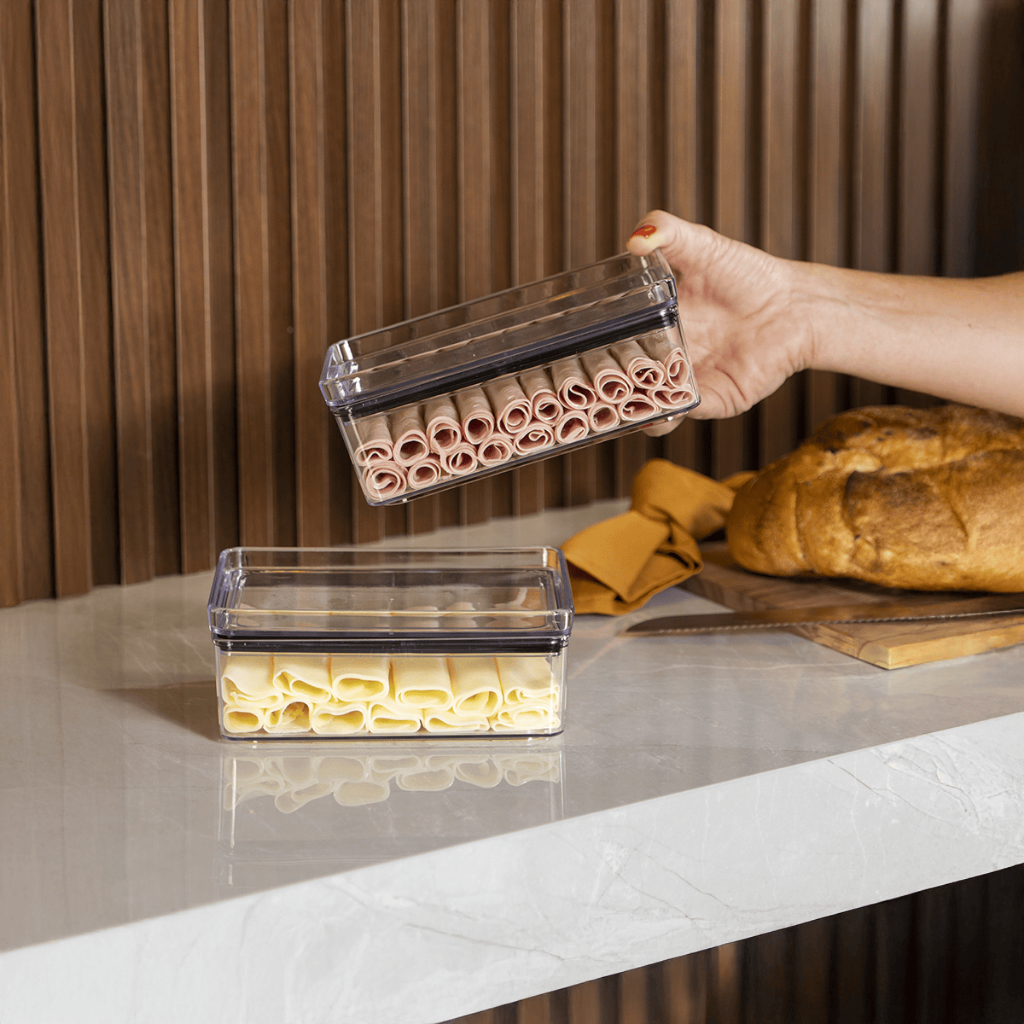 Kit Pote Hermético Paramount Empilháveis Porta Mantimentos Acrílico Tampa com Vedação Emborrachada