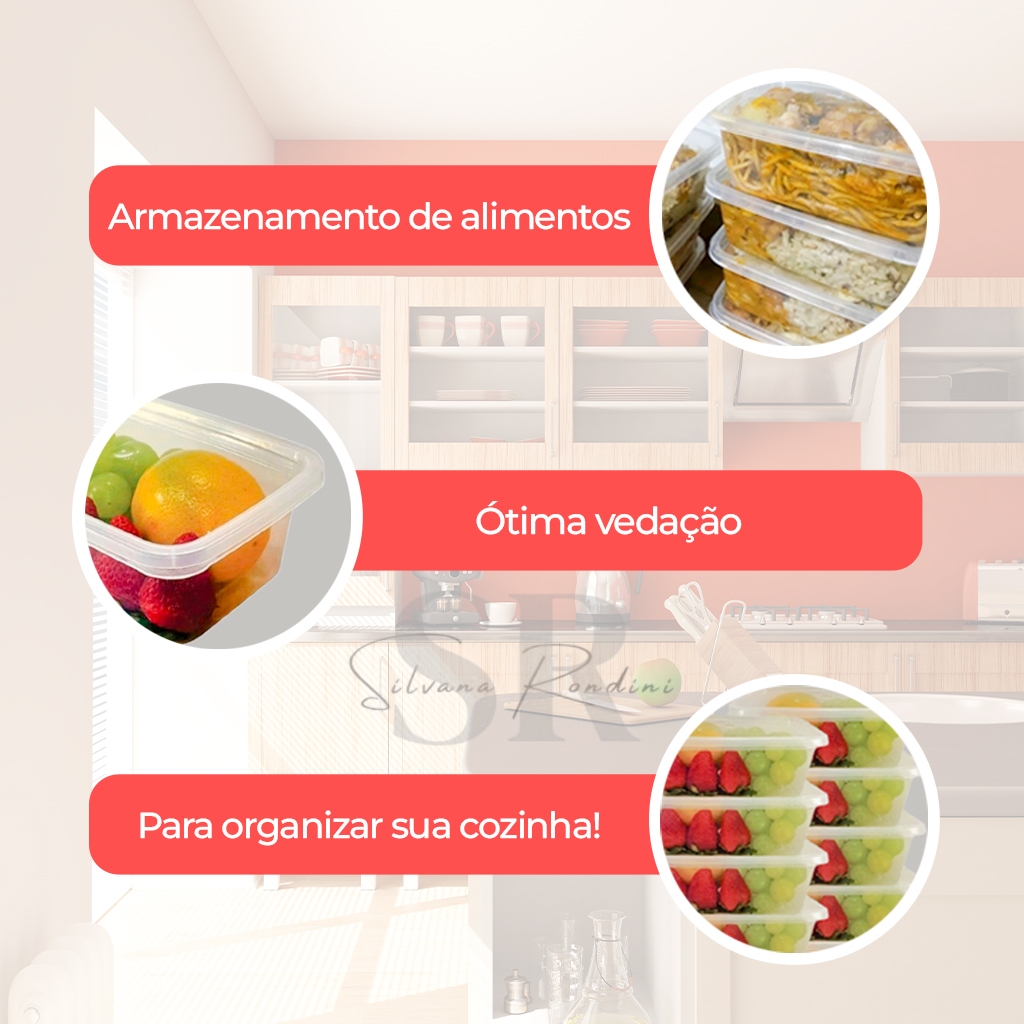 Kit Pote Retangular 5 Unidades 1500ml BPA Free Armazenamento De Alimentos Marmita Congelada