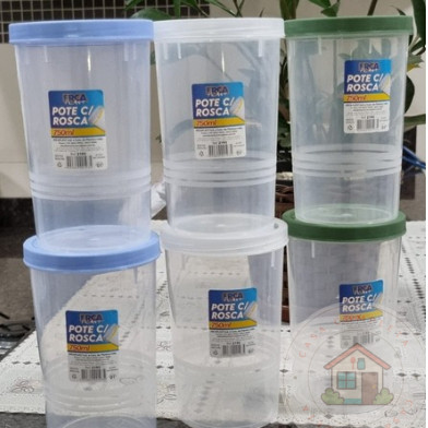 Kit Pote Rosca 750 ml Transparente de Plástico Organize e armazene seus alimentos com praticidade e segurança! O Kit Pote Rosca 750 ml é perfeito para guardar grãos, biscoitos, balas, temperos, farinhas e muito mais. Fabricado em plástico resistente e transparente, facilita a visualização do conteúdo e garante maior higiene para o seu dia a dia. Com tampa de rosca, o pote fecha de forma segura, evitando vazamentos e mantendo os alimentos sempre frescos. Suas dimensões são ideais para aproveitar melhor o espaço na despensa, geladeira ou armário. Diferenciais do produto: Capacidade: 750 ml Medidas: 9,5 cm (diâmetro) x 14 cm (altura) Tampa de rosca: vedação segura Material plástico transparente e resistente Fácil de limpar, leve e prático para o dia a dia Ideal para organizar mantimentos, lanches, doces, condimentos e muito mais Leve mais organização, praticidade e higiene para sua cozinha com o Kit Pote Rosca 750 ml!