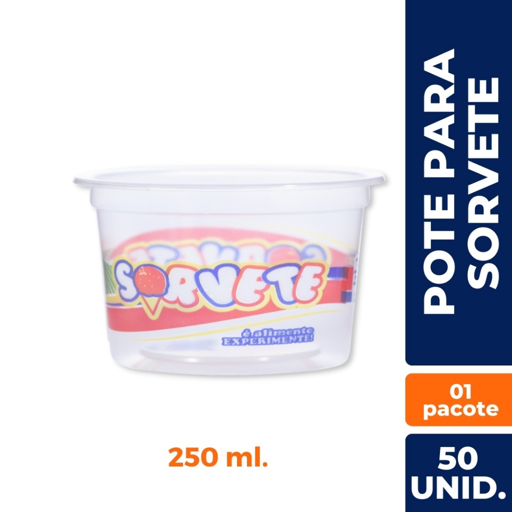 Kit pote sorvete 250ml com tampa plástico transparente 50 unidades, Sorveteria, Açai