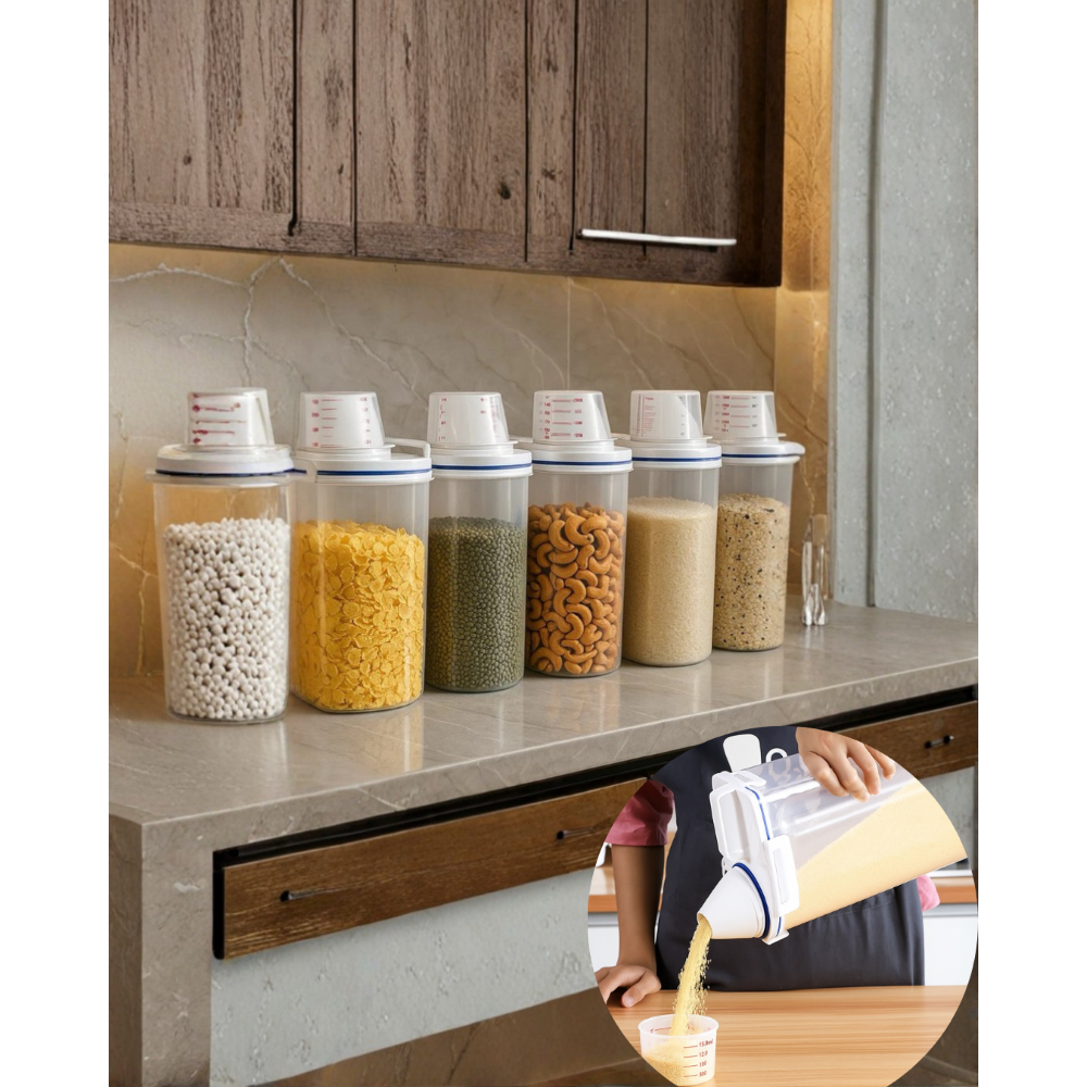 Kit Potes 1 a 6 Herméticos 2,5L Copo Medidor Trava para Alimentos Ração Sabão Multiuso Bico Dosador