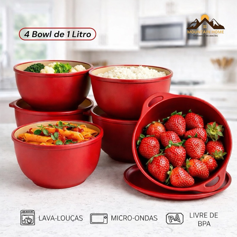 Kit Potes de Mantimento Cozinha 5 Peças + 4 Bowl Potes Redondo