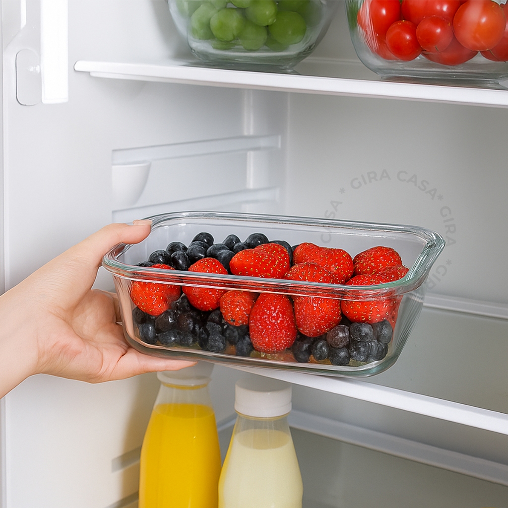 Pote de Vidro Hermético 640ml: Organização e Frescor com Estilo! Mantenha seus alimentos frescos e saborosos por mais tempo com nosso Pote de Vidro Hermético de 640ml, equipado com uma tampa de 4 travas para um selamento perfeito. Diga adeus a vazamentos e contaminações! Benefícios e Vantagens •Frescor Prolongado •Economia e Menos Desperdício: Com a tampa hermética de 4 travas, seus alimentos permanecem frescos por mais tempo, reduzindo o desperdício e economizando dinheiro. Material Premium •Durabilidade e Resistência: Feito de vidro borossilicato super resistente, suporta uso diário e temperaturas de até 300°C (sem a tampa). Versatilidade •Uso Diversificado: Ideal para armazenar refeições caseiras, lanches e pequenas porções. Pode ser usado no freezer, micro-ondas, forno (sem a tampa) e lava-louças. Ecológico e Seguro •Sem Químicos Nocivos: Livre de BPA e outras substâncias prejudiciais, é seguro para sua família e para o meio ambiente. Design Elegante • Estilo e Funcionalidade: Além de eficiente, adiciona um toque de elegância à sua cozinha ou despensa. Ficha Técnica • Material: Vidro Borossilicato • Capacidade: 640ml • Dimensões: 7 x 12 x 17 cm • Tampa: Hermética com 4 travas • Resistência: Até 300°C (sem a tampa) • Uso: Freezer, micro-ondas e lava-louças • Segurança: Livre de BPA • Versatilidade: Ideal como marmita Conteúdo da Embalagem • 10 Potes de Vidro Hermético de 640ml Instruções de Uso e Cuidados • Primeiro Uso: Lave com água morna e sabão neutro. • Selamento: Encaixe corretamente a tampa para garantir a vedação. • Micro-ondas: Retire a tampa antes de aquecer. • Manutenção: Lave à mão ou na lava-louças; evite utensílios abrasivos e choques térmicos. *EVITE MUDANÇAS SUBTIDAS DE TEMPERATURA, AO TIRAR DO CONGELADOR ESPERAR O PRODUTO DESCONGELAR PARA LEVAR AO MICROONDAS*