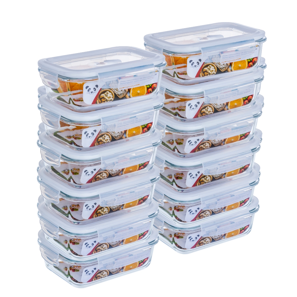 Kit com Potes Herméticos Retangulares 640ml – Vidro Borossilicato Armazene seus alimentos com segurança e praticidade com este kit contendo 10 potes herméticos retangulares de 640ml. Fabricados em vidro borossilicato, um material altamente resistente a choques térmicos, eles podem ser levados ao forno, freezer e lava-louças sem preocupações. Suas tampas de plástico possuem 4 travas de silicone, garantindo vedação eficiente e evitando vazamentos. Com um design moderno e detalhe azul na borda, são ideais para conservar alimentos na geladeira, transportar marmitas e auxiliar no preparo de receitas. Características: - Material: Vidro borossilicato - Tampa com vedação hermética: 4 travas de silicone - Resistência a choque térmico - Pode ir ao forno, freezer e lava-louças - Ideal para armazenamento seguro e transporte de alimentos Ficha Técnica: - Capacidade: 640ml cada pote - Dimensões aproximadas de cada pote: 6cm (A) x 12,5cm (L) x 17cm (C) - Aviso: As cores podem variar entre as imagens e o produto real. Imagens meramente ilustrativas. Conteúdo da Embalagem: - 5 a 20 Potes Herméticos Retangulares de 640ml cada