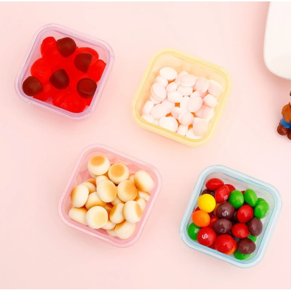 ENVIADO EM CORES ALEATÓRIAS Kit Mini Potes Herméticos Os mini potes herméticos possuem tampa antivazamento, podem ser utilizados em freezer ou micro-ondas. São ideais para levar na lancheira, podendo ser utilizados para levar frutas, cereais e muito mais. É fácil de transportar e fácil de limpar. Fabricado em plástico (PP) Livre de BPA Tamanho: 5cm X 8cm cada Forma: Quadrada Capacidade do produto: 150ML Obs.: O aquecimento por micro-ondas é proibido com uma tampa. O congelamento deve deixar espaço para a expansão do líquido.