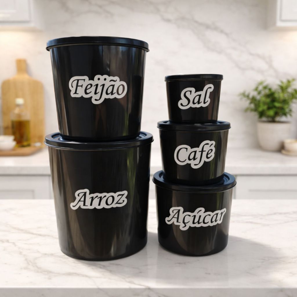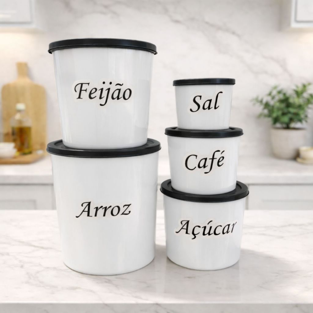 O Kit de Potes para Mantimentos com 5 peças é perfeito para manter seus alimentos organizados, protegidos e sempre à mão no dia a dia. Além de funcional, o conjunto traz um toque moderno e delicado para sua cozinha, facilitando a identificação dos alimentos com etiquetas já aplicadas. Ideal para guardar arroz, feijão, açúcar, café e sal, deixando tudo mais organizado e evitando bagunça nos armários. 🍚 O QUE VEM NO KIT ✔ 1 Pote Arroz – 7 Litros ✔ 1 Pote Feijão – 4 Litros ✔ 1 Pote Açúcar – 2 Litros ✔ 1 Pote Café – 1 Litro ✔ 1 Pote Sal – 650 ml ⭐ BENEFÍCIOS DO PRODUTO ✅ Organização prática da cozinha ✅ Identificação fácil com etiquetas ✅ Tampa que protege os alimentos ✅ Material resistente e leve ✅ Design moderno que decora a cozinha ✅ Pode ir na geladeira, microondas e lava-louças