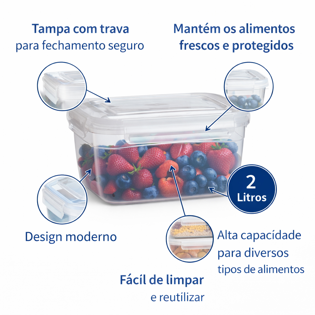 | Kit Potes Marmitas Com Trava 2 Litros Alto Bpa Free Freezer E Micro... este produto | R$ 75,99 | 17% | 4.8/5 | 27 |