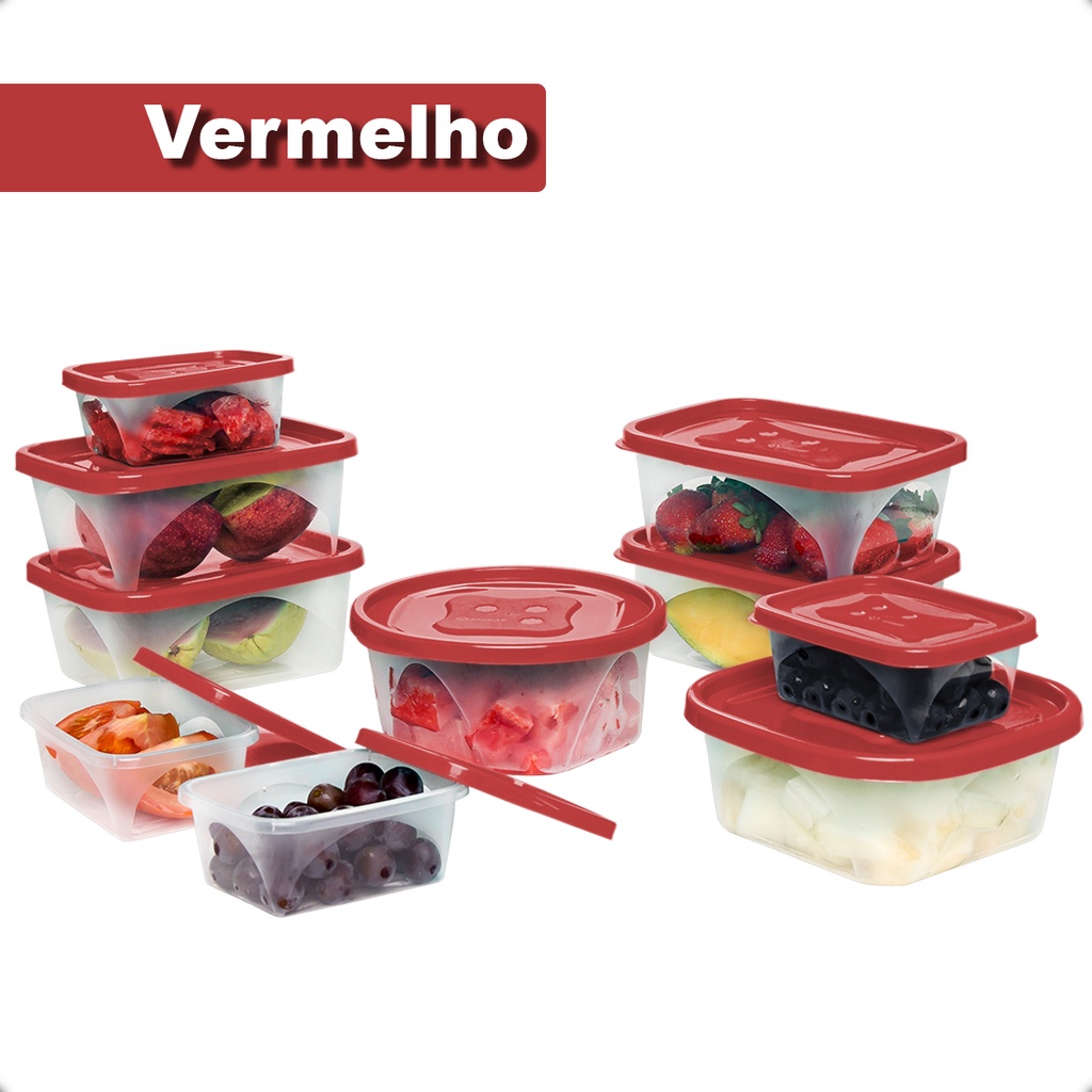 BEM VINDO A ESTRELA DO LAR Conjunto De 10 Peças - Jaguar Utilidades São 10 potes de alto nível de qualidade e durabilidade, conseguindo suportar temperaturas baixas, ser levado ao micro-ondas e lava-louça. Perfeito para conservação de alimentos, armazenamentos de doces, salgados e até mesmo frutas, mantendo todos os tipos de alimentos protegidos de contaminações externas. Esse conjunto vem com 6 potes de 220 ml, 1 pote 650 ml, 1 pote de 740 ml e 2 potes de 750ml Todos os potes têm uma excelente vedação e é multiúso podendo ser usados como marmita, passeios, viagens, Agradecemos a preferência. Atenciosamente equipe Estrela do Lar.