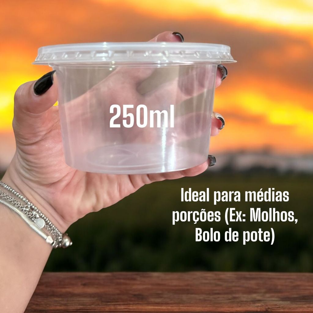 Kit Potes Plástico Potinho Redondo Descartável C/ Tampa para bolos, doces, sopas, congelar