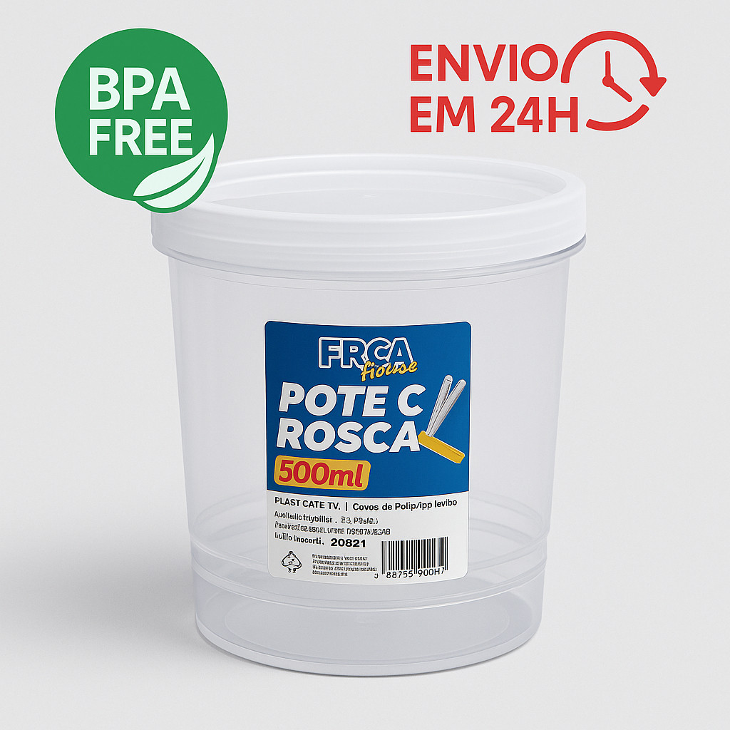 Kit Potes Plásticos 500ml com Tampa de Rosca - Vedação Perfeita, Multiuso, Cores Sortidas