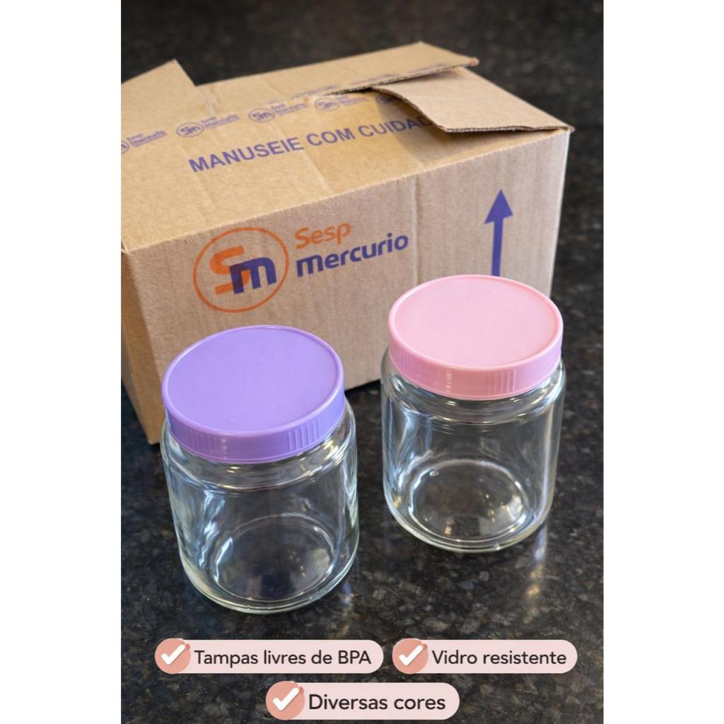 Kit Potes Vidro 200ml para Leite Materno Papinha Tampa BPA Free Coloridas Nadir Figueiredo Belem